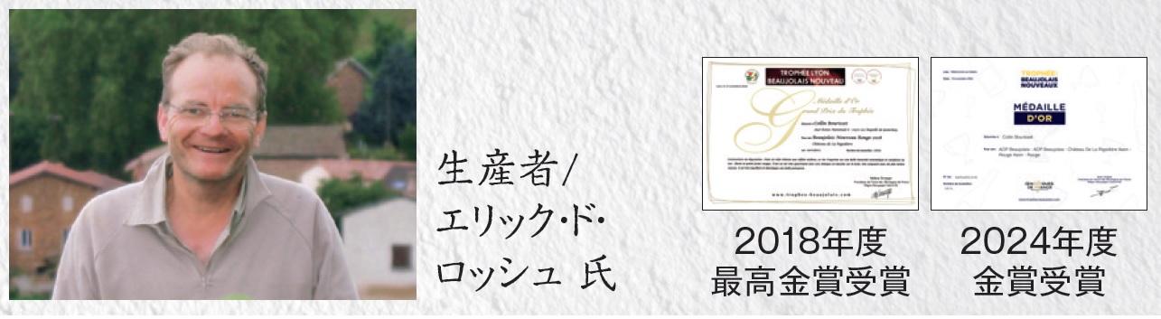 ベルベットのような舌触りをもつ心地よい甘さ、まろやかでエレガントな酸味、ふくよかな果実味のバランスが良く、ヌーヴォー特有のフレッシュさも兼ね備えたワイン。