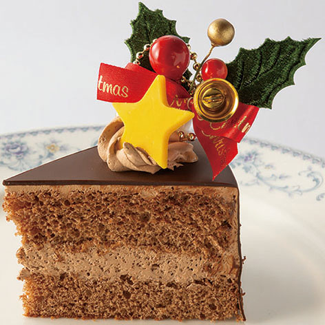 全体を固いチョコレートでコーティングし、少しビターなココアスポンジに甘酸っぱいいちごジャムがアクセントとなり、なめらかなチョコレートクリームをトッピングした往年のチョコレートケーキとなります。
