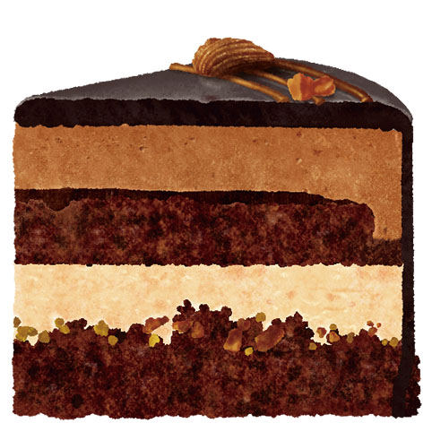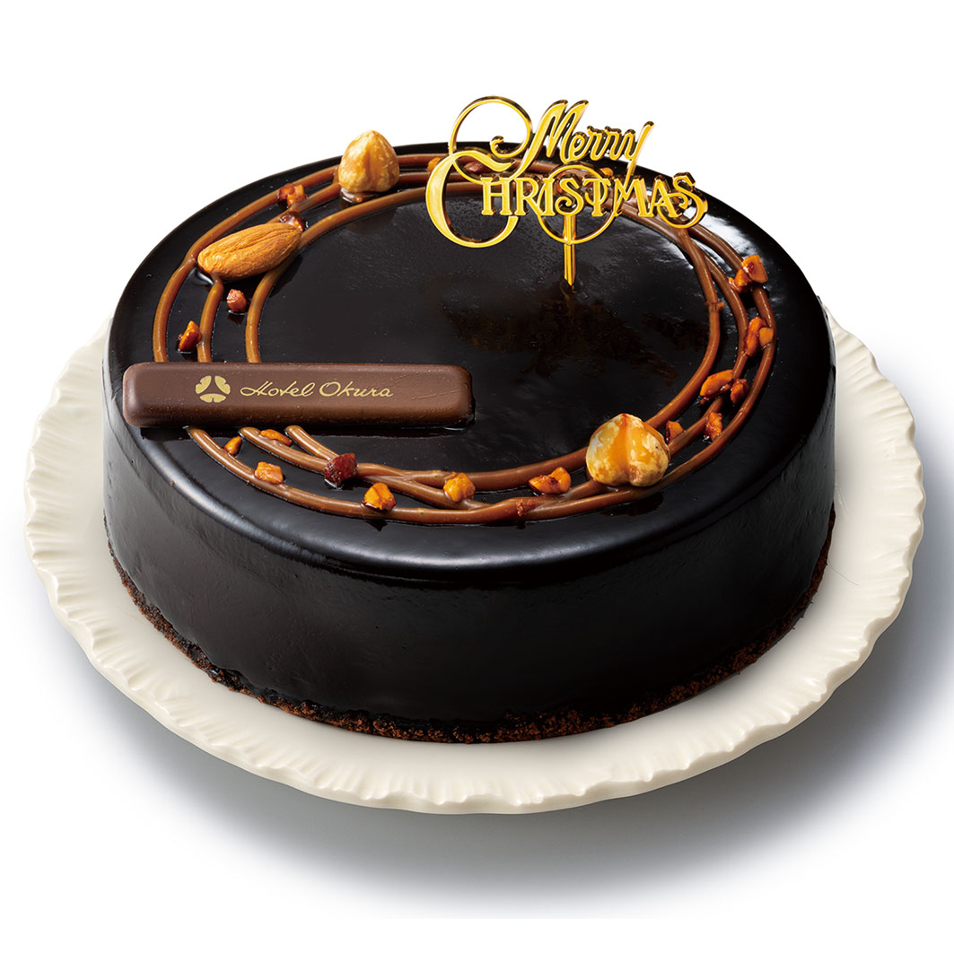 ビターなショコラムース、ヘーゼルナッツショコラシャンティ、キャラメルソースを重ね、食感のアクセントにアーモンド、香りづけにコアントローを使用した贅沢なショコラケーキです。