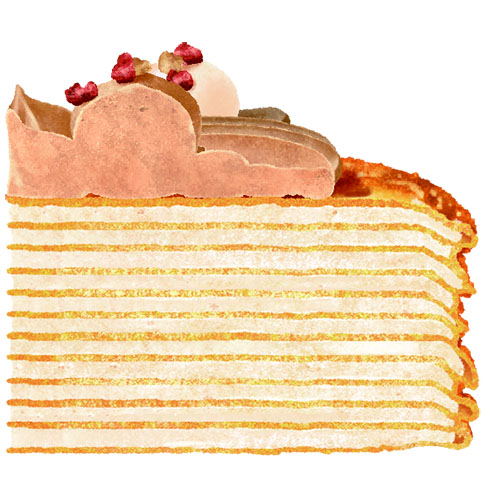 マリオンクレープオリジナルの粉を使用したふんわり軽めの皮を何層にも重ねたミルクレープです。