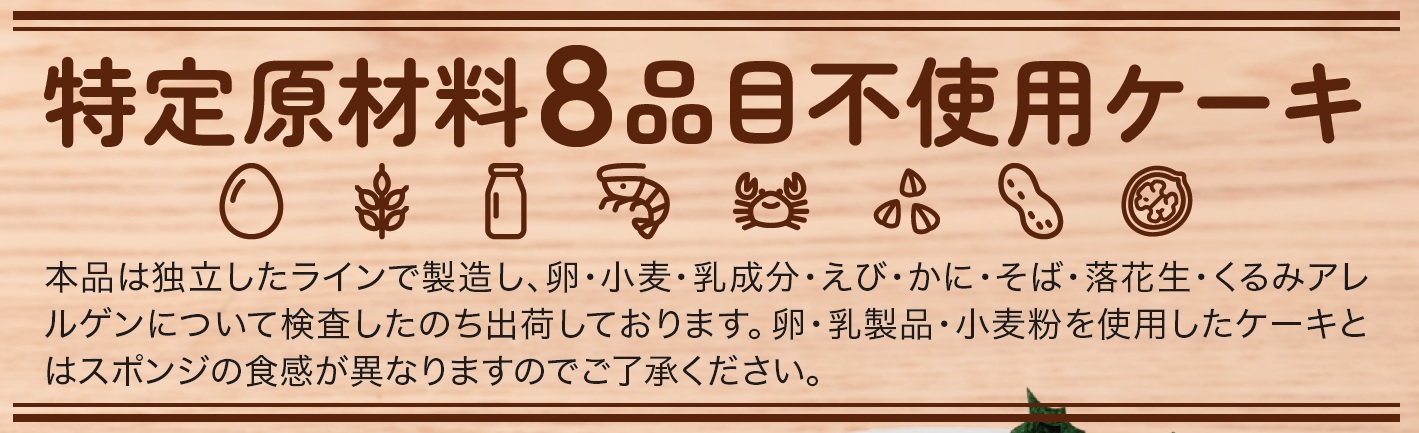卵・乳製品・小麦粉を使用したケーキとはスポンジの食感が異なりますのでご了承ください。